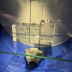 宝石厅的展品以单晶宝石和玉石两个部分为主,宝石部分包括钻石、红宝石、蓝宝石、石榴石、碧玺、橄榄石、托帕石、锆石、水晶等,玉石部分包括翡翠、绿松石、青金石、孔雀石、独山玉、萤石等。