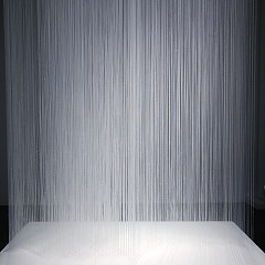 与之一壁之隔的是林天苗2000年的作品《白日梦》,展览地面置有一个悬空的床垫,上方放置一张与床垫等大的画布框,画布与床之间被无数根白棉线上下连接着,床垫表面的布被向上牵引。