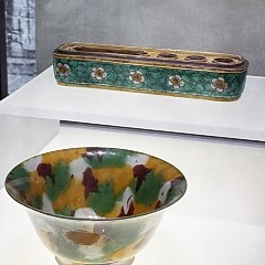 展览不仅呈现新石器时代变形蛙纹彩陶罐、元青花四爱图梅瓶等馆藏珍品,还有逾100件展品为首次公开展出,包括战国施彩磨光黑陶舞俑、唐三彩罐、明代琉璃龙形建筑构件、清乾隆仿钧釉蝶耳衔环尊、清代「储秀宫」款青花缠枝莲纹大盘等。