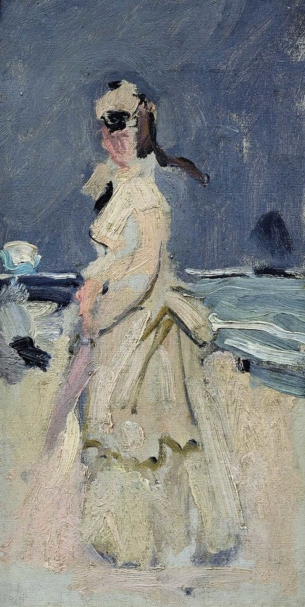 《卡米尔在特鲁维尔海滩》(Camille à la plage),Claude Monet,1870年