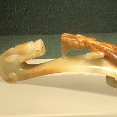 本次展出的玉带钩造型十分丰富,有禽鸟形、曲棒形、琵琶形、兽形、长条形、异形等,同时可见各种吉祥寓意的装饰纹样,如「龙凤呈祥」「苍龙教子」「三羊开泰」等,观者不仅得以充分了解元明清时期玉带钩的发展面貌,也能一窥当时社会「图必有意,意必吉祥」的文化潮流。