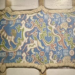 「五星出东方利中国」锦护膊(复制品),汉代,新疆维吾尔自治区博物馆藏
