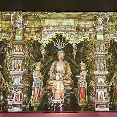 「金铜集萃」集中展示一批小西天收藏的明晚期和清早期的汉传佛教造像;「西天圣境」讲述小西天悬塑的整体制作流程、制作工艺与艺术表现,以及目前对这一文化遗产的保护、传承和利用。