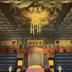 养心殿正殿明间依照雍正以来举行小朝会时的样貌布置,宝座上方悬挂雍正御笔「中正仁和」匾。西暖阁按照雍正乾隆时期布置,悬挂着「勤政亲贤」匾和「惟以一人治天下,岂为天下奉一人」的对联。