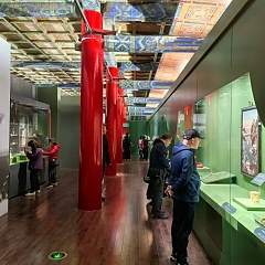 「百年传承」篇章分「国宝汇流」「古物重光」「殿宇生辉」三个部分,以文物回购、拨交和捐献的视角讲述故宫博物院藏品体系建构历史,展现故宫文物的历史、艺术和科学价值,以书画临摹复制和文物修复的技艺展示,全面呈现文物保护的技艺传承,通过宁寿宫、养心殿内檐装修、太和殿大修、故宫及北京中轴线申遗,展现古建筑保护修缮的创新实践。