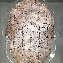 甲正面现存11条契刻占卜记录,其中刻辞「己卯卜,贞:秋不死?子曰:其死」所记即「子」卜问蝗灾是否将会消亡之事。商代甲骨文中「秋」字的含义之一是蝗灾。
