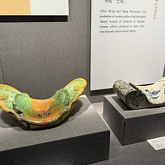 展览以时间为序分为6个部分:唐代介绍巩县窑、长沙窑陶瓷枕,以及三彩、绞胎等相关技法;宋代重点突出鼎盛期的陶瓷展,涵盖定、汝、井陉、湖田等南北名窑的作品;辽代部分以龙泉务窑三彩枕为例说明其特征。