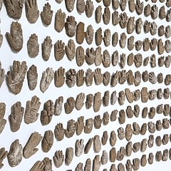 马克·奎恩在1991年创造了首个《面包手》(Bread Hands)雕塑系列——将自己的手放在面包上,重复勾画手部的外型与掌纹,创造出能够表达他身体特征的图案,每件《面包手》都是独一无二的,代表了命运的变幻莫测。本次展览中,艺术家还将邀请参观者在美术馆的窑内制作属于自己的「面包手」。