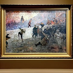 1878年,列宾正式加入巡回艺术展览协会。该协会简称「巡回展览画派」或「巡回画派」,是19世纪下半叶至20世纪初俄罗斯一个重要的艺术家组织,因在各城市巡回展出画作而得名。该协会成员主张艺术为普通人服务,以现实主义手法表现俄罗斯社会各个阶层真实的生活面貌。
