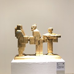 刘政德1931年出生于湖北天门,长期从事雕塑创作,担任湖北美术学院教授。他的雕塑作品形式简练,富有张力,以特色鲜明的寓言雕塑最为人熟悉。1986年,以刘政德的「狐假虎威」等8件雕塑构成的寓言雕塑公园在武汉东湖建成。