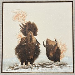 「雪域彩练」专门呈现布面重彩画作品,这种绘画融合了西藏的唐卡、壁画与中国传统工笔重彩画等要素,也借鉴吸纳了西方写实绘画和现代绘画的因素,体现了西藏现代绘画的创新。