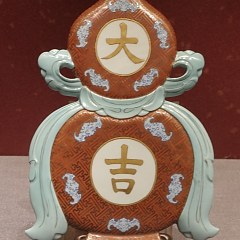 同治十一年(1872)同治皇帝大婚,景德镇御窑厂为此专门烧造了1万余件瓷器。本次展出的粉彩黄地梅鹊大碗、羹匙、小碗、盘,粉彩红地喜字盘、大碗等,均为同治皇帝大婚用瓷。