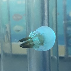 此次展出的水母涵盖7个种类,包括赤月水母、倒立水母、海月水母、巴布亚硝水母、天草水母、大西洋海刺水母、彩色水母等。