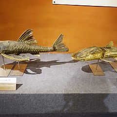 展出的化石鱼类包括软骨鱼类、肉鳍鱼类和辐鳍鱼类约30种,某些鱼类处于生物进化的关键环节(如空棘鱼类),对描述鱼类演化与谱系关系具有不可替代的作用。
