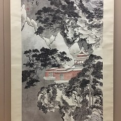 依次为:《新江安行舟图》,张大千,1932年;《排云殿图》,溥心畬;《秋山图》,溥心畬