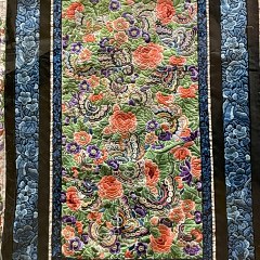 蓝色暗花缎地绣花鸟纹夹棉阑干马面裙,清代,北京服装学院民族服饰博物馆藏