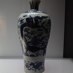 梅瓶作为一种具有储酒实用、陈设装饰等多重用途的器物,始见于唐代,流行于宋代,元明清时期随着景德镇青花瓷器的大量烧造而日趋风行。其各个时期的造型虽有不同,但大致不离短颈,小口,丰肩,圆腹,敛腰,窄胫等基本特征。