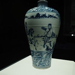 青花岁寒三友仙人图带盖大梅瓶,明嘉靖