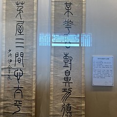 纵观清代篆书历史,大致可分为早、中、晚三期,早期是以王澍等为代表的「复古」阶段,中期是以邓石如等为代表的「变革」阶段,晚期则是以吴昌硕等为代表的「融彻」阶段。第一单元展品包括书法家王澍的篆书七言联,结字匀称端庄,法度分明,圆润婉转。