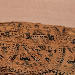 「长葆子孙」汉云气动物纹经锦残片,汉代,中国丝绸博物馆藏