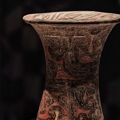 展览划分序章「五行始终」以及「启、丽、光、华」四个叙事单元。第一单元「启」聚焦新石器时代的纹饰纹样,亮点展品包括仰韶文化人面鱼纹尖底器、良渚文化神人兽面纹玉琮等,这些古拙质朴的纹样体现了先民在手艺与审美形成初期的探索。