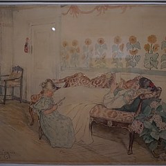 《躺在长椅上的年轻女人》,Carl Larsson