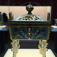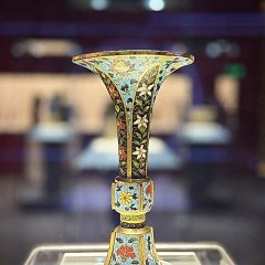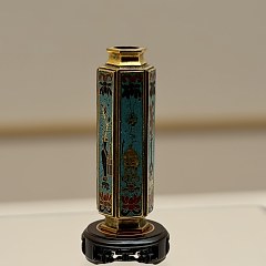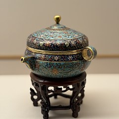 铜胎掐丝珐琅是中国具有代表性的特种金属工艺品,俗称「景泰蓝」。这种工艺品以红铜作胎,将扁铜丝围成各种花纹后焊于器物表面,然后将珐琅釉料填入花纹内,经焙烧、打磨、镀金等工序成器。掐丝珐琅工艺大约于13世纪中叶从阿拉伯地区传入中国,很快融汇中华传统美学,发展成明清宫廷工艺品的典型代表品种,并在清乾隆时期达到鼎盛。