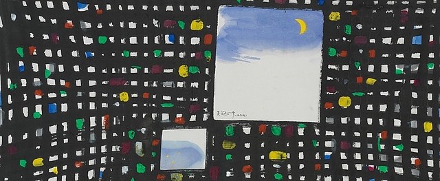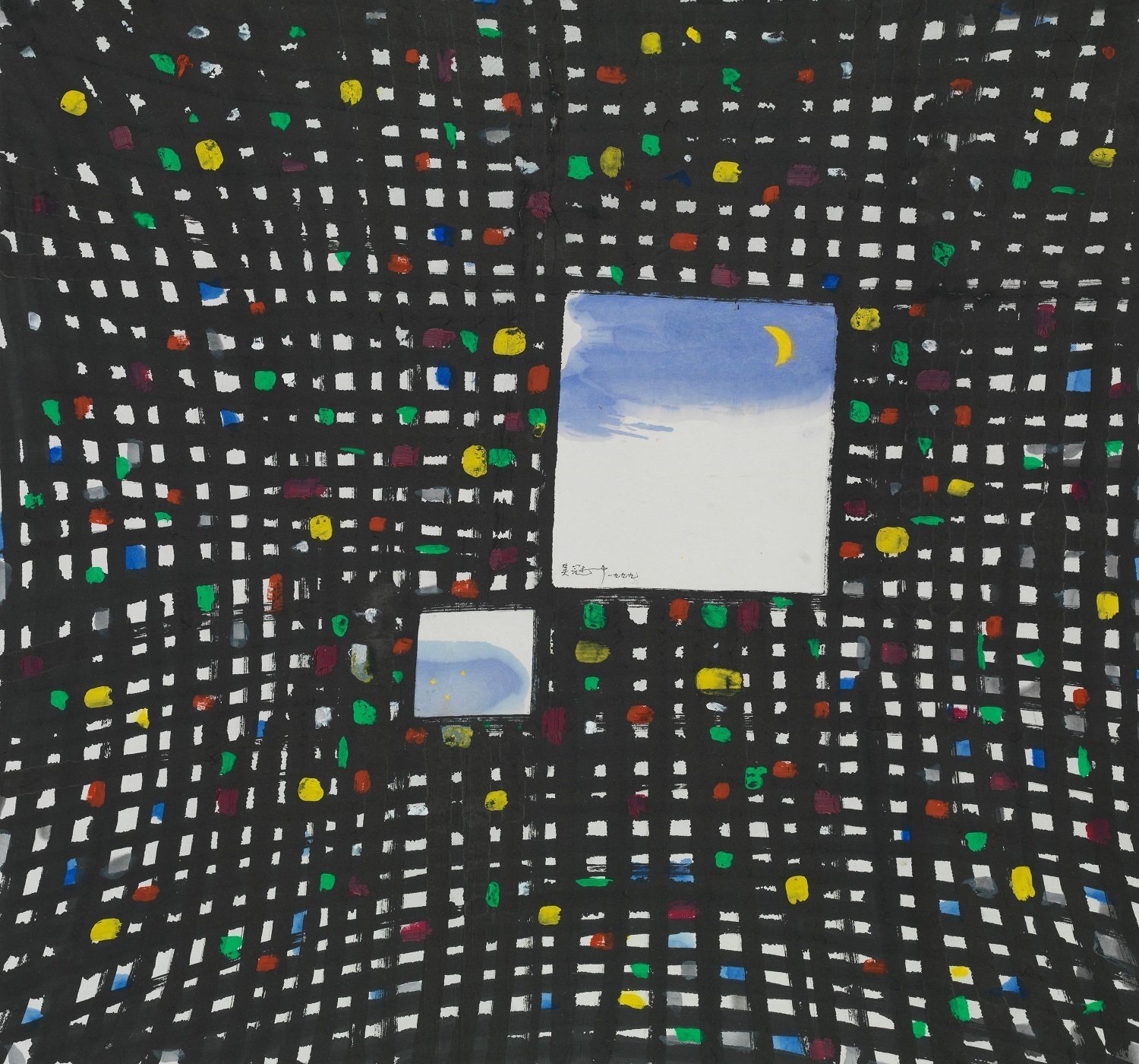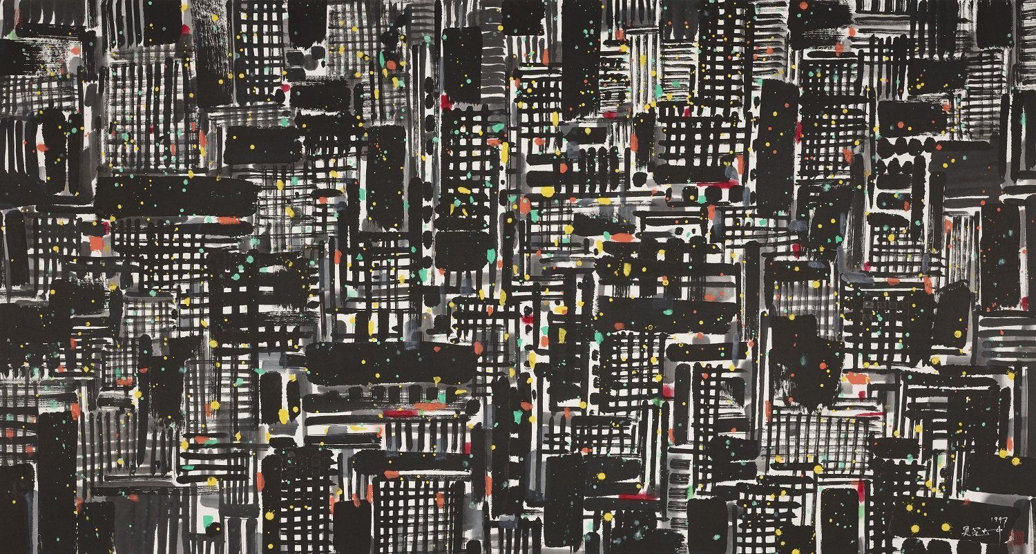 《都市之夜》,吴冠中,1997年,纸本水墨设色