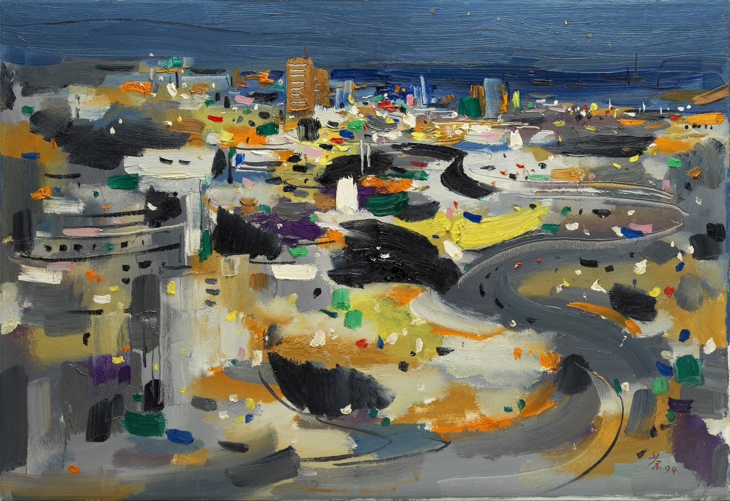 《奥斯陆之夜》,吴冠中,1994年,布面油彩