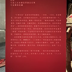 「阿拉」老宁波——宁波民俗风物陈列位于博物馆第三层,利用蜡像、仿造建筑、影像复原和互动服务等方式展现宁波缸鸭狗、楼茂记、齐全寿、状元楼等老字号商铺组成的旧式商业街街景,十里红妆等民俗活动,朱金木雕、骨木镶嵌、泥金彩漆、金银彩绣等宁波传统工艺和甬剧、唱新闻、马灯调、宁波方言等宁波文化特色。