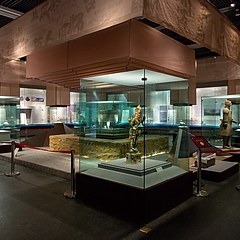 其他重点展品包括来自宁夏的贺兰山岩画,甘肃的人头形器口彩陶瓶、《仪礼》汉简,河南的唐三彩天王俑、杜岭方鼎,陕西的秦陶铠甲军吏俑,四川的蜀石经,内蒙古的立式有角青铜鹿,山西的陶寺土鼓、晋侯鸟尊,山东的红陶兽形壶等。