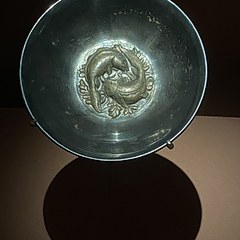海兽水波纹银碗,唐代,何家村窖藏出土