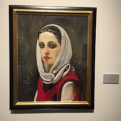 前苏联时期画家梅尔尼科夫继承了俄罗斯绘画的写实传统,但在写实中增加写意和表现象征的成分,《红衣少女》即有此类风格。