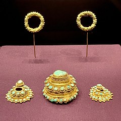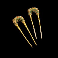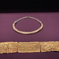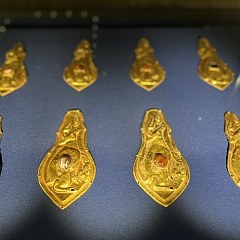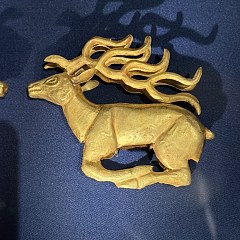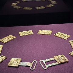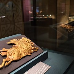 展览分为三个单元。第一单元「兴起:草原与早期中国」展现黄金从欧亚草原传入中国的历程,以及商周至汉代贵族如何逐渐接受黄金饰品,形成中原与草原之间频繁互动的物质纽带。