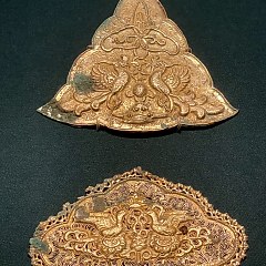 镶绿松石对兽纹鞍桥饰(局部),吐蕃(7-9世纪)