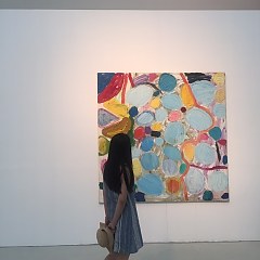 Gillian Ayres 出生于1930年,16岁进入伦敦坎伯韦尔艺术学院学习,1956年首次举办个人展览。1986年英国女王伊丽莎白二世授予 Ayres 大英帝国官佐勋章(OBE),1991年,61岁的 Ayres 当选英国皇家艺术研究院院士。
