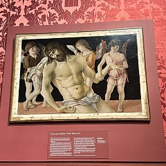《圣殇》创作于约1470年,描绘了年轻天使安放基督遗体的过程画面,艺术家通过天使的沉思营造肃穆的氛围,传递出悲怆的情绪。这幅作品由意大利里米尼城市博物馆收藏,在「威尼斯文化遗产基金会」(Venetian Heritage)的支持下完成修复。
