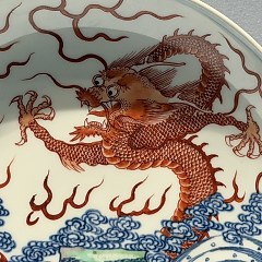 青花五彩海水云龙纹盘,清康熙