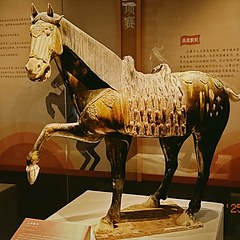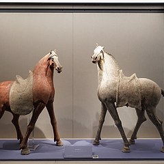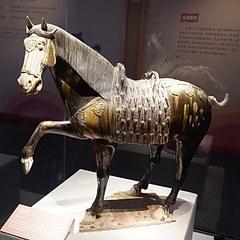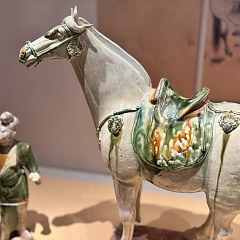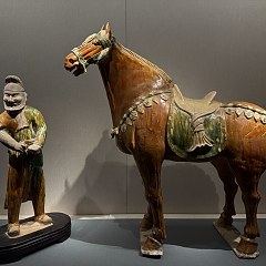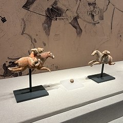 本展是第十五届全运会马术比赛的配套文物展览,共呈现陕西唐三彩艺术博物馆收藏的60件唐代文物,包括三彩舞马俑、彩绘打马球俑、仕女骑马俑等,剖析马在唐代政治、军事、体育等领域的重要地位,反映盛唐开放进取的时代气质。