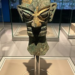 戴金面罩铜人头像,商代,四川广汉三星堆博物馆藏