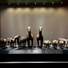 「汉家陵阙」以汉阳陵考古发现为切入点,通过瓦当、空心砖等文物,一窥汉代帝陵的恢弘气象,将观众引入「文景」时代。「治国之道」借助官印、度量衡、车马器、骑兵俑等文物从国家制度层面探究「文景之治」产生的原因,即政治上的汉承秦制、经济上的与民休息、军事上的秣马厉兵。「盛世华章」下设仓廪实足、礼乐昭彰、风华绝代三个主题,通过生活器具、陶塑动物、金银器、彩绘陶俑等文物一展「文景」时代的艺术生活之美,着重体现大汉治世气象。