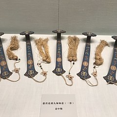 《普天同庆:清代万寿盛典展》展示清代宫廷寿庆的礼仪形式、筵宴情况,展品包括玉石仙台、乾隆碧玉交龙钮「古稀天子之宝」和青田石「元音寿牒」组印等。
