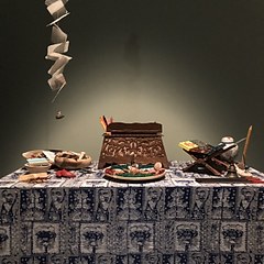 这五幅作品是艺术家根据古老的殖民地照片而进行创作,画面呈现和野兽在一起的马来人,人类与非人类生物的关系难以确定,并引发思索——是人类捕猎野兽,还是殖民者将两者一视同仁地并置在一起?