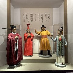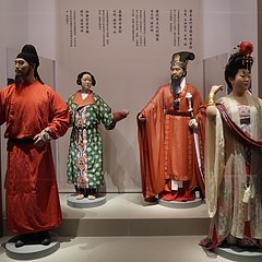 除了直接表现古代服饰形制的实物之外,展厅还陈列了大量图片、多媒体设施,以及15尊不同时代的服饰复原人像,生动描绘中国古代服饰的审美取向和穿着场景,力求完整呈现古代衣冠配饰的整体形象,打造一部立体版的中国古代服饰简史。