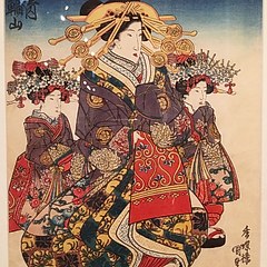 浮世绘是江户时代日本庶民阶层娱乐文化的载体,题材主要是演义故事中的英雄角色和当红歌舞伎演员,地位相当于现代的杂志与海报。其中歌川国芳的作品倾向于充满男儿气概的英雄故事,展现了将人情义气置于个人利益之上的兄弟情谊,受到江户子弟们的追捧;而歌川国贞取材于当时流行的歌舞伎,作品中的男女形象充满魅力,可以说是江户女子们的梦想。