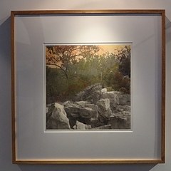 赵刚将个展题目定为《偶园》,口语中就是「我的园」,意在借历史线索,讲自己故事。这些作品是摄影和绘画的综合体,赵刚在铂金感光纸上记录了凹凸错杂的黄石假山、空寂无人的亭轩楼榭、临水的曲桥、蜿蜒的长廊、墙角的衰柳颓木和幽深的山林阴影,叠加的绘画又构成对真实性的篡改,园林和园图反叛性地构成了对立关系。在空间—摄影—绘画的转换过程中剥离了传统园图的乡愁和诗意,让我们看到林泉背后的荒芜和残酷。