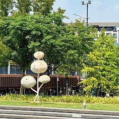 2025年春季,加里波第受邀在余德耀美术馆户外及蟠龙天地社区呈现公共艺术项目「融合之地」(Lartucira Field)。基于对在地文化、生态环境与社区建设的持续思考,艺术家创造了一系列白色石膏雕塑「融合雕塑」(Lartucira Kloumir),并与社区参与者共同完成特定场域壁画「融合壁画」(Lartucira Komper)。灵芝、平菇等本地菌种在艺术家雕琢的石膏雕塑体内随时间悄然生长变化,形成动态的肌理。