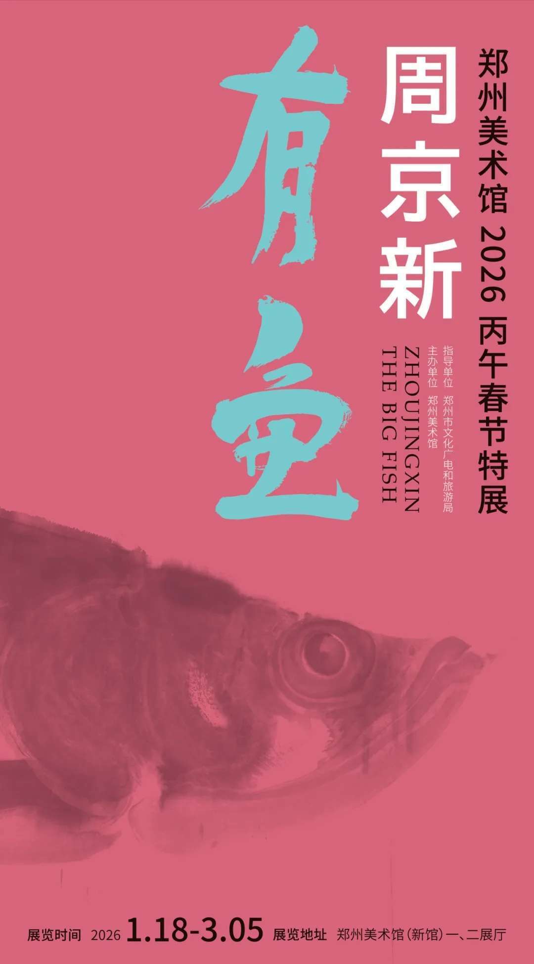 为庆祝2026年新春佳节,郑州美术馆将呈现中国当代水墨艺术家周京新2025年以来的最新创作成果《有鱼》系列,作为春节献礼以飨公众。