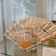 展陈亮点包括一件海景扇面的蕾丝扇,由19世纪比利时工坊 Minne-Dansaert 制作;还有一件俄国珠宝品牌 Fabergé 制作的扇子,扇柄为玳瑁材质,镶有金、钻石和珐琅作为装饰。