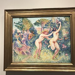 展览通过研究印象派画家在各个时期使用的不同色彩,展现了颜色在这些作品中的重要性,例如法国画家马奈受西班牙绘画影响,在作品中大量运用深黑色;塞尚和莫奈在室外创作风景画时,经常使用蓝色和绿色;雷诺阿在描绘古典女性时,通常使用浅粉色或粉色调。